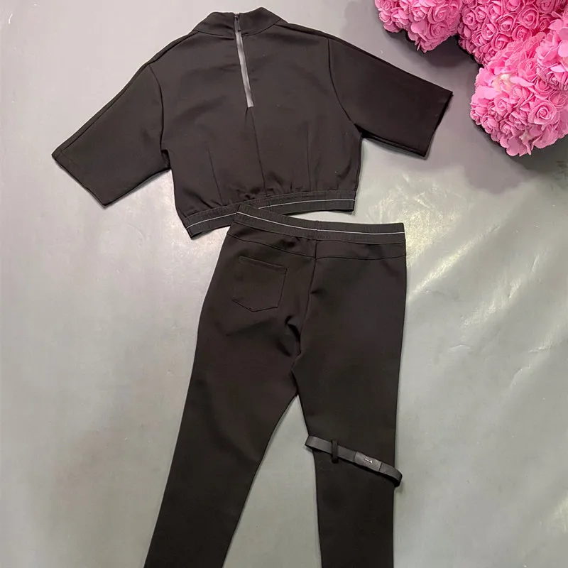 2021 women's Spring and autumn black suits and suits in solid color casual fashion corner sleeve embellished jacket